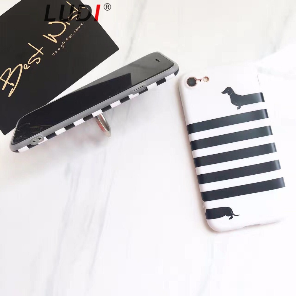 LUDI Brief Soft TPU Funda for iPhone 8 6 7 Plus Cases Dachshund Dog Horizontal Stripes Ring StanderCase for iphone 6s 6 Plus 17